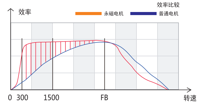 2低負載狀態下依然高效:永磁同步電機的能效在滿負荷運行時比異步電機高9%以上,并且隨著頻率降低,其能效保持不變。
